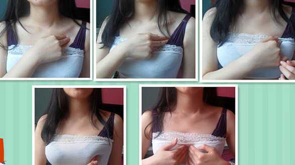 6、掌心朝上(避开乳晕),双手轮流抓提单侧乳房,左右各一百下。