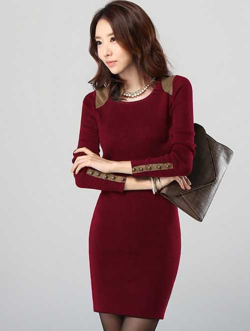 超显瘦的韩版大码连衣裙,超时尚的复古酒红色,散发出浓郁的优雅气质,让微胖MM也能轻松hold住,独特的袖子和肩部设计,穿出独特时尚范儿!