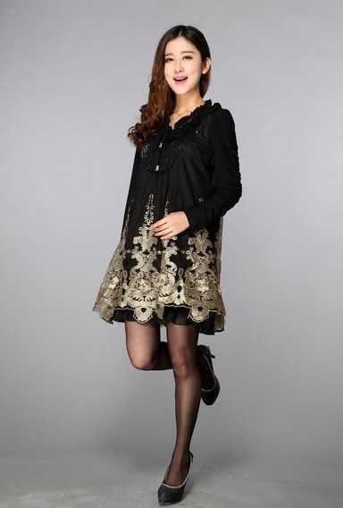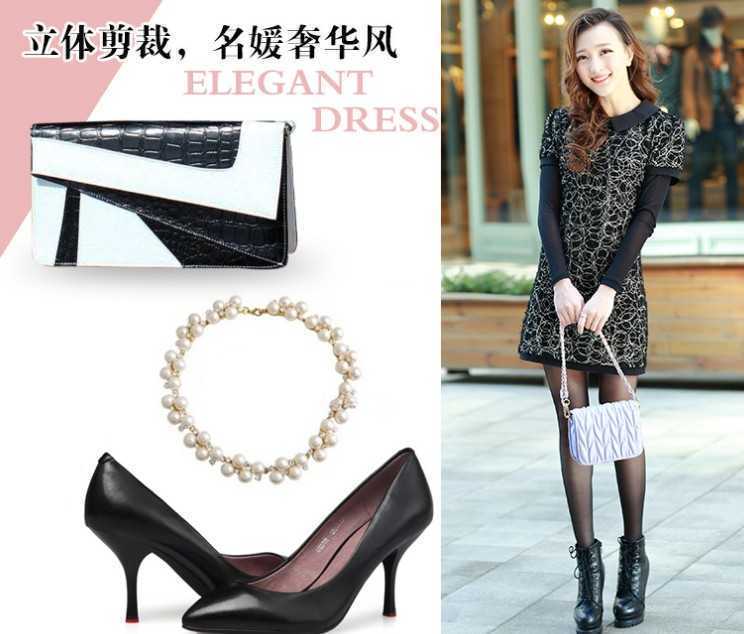 韩版通勒风格的高腰大码连衣裙,2014新款,精致的刺绣工艺,点缀得非常唯美,很优雅很女人。