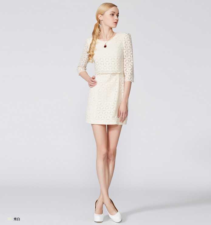 丰知性优雅气质的米白色2014新款连衣裙,作为一个时髦的知性女郎,绝对要选择这样的一款,吸引眼球,妩媚而女人味!