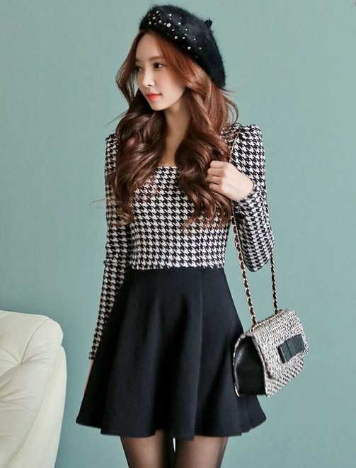 永不过时的千格子,针织款的百褶裙摆,穿出优雅妩媚气质,修身长袖的内搭连衣裙,凸显出婀娜多姿身姿。