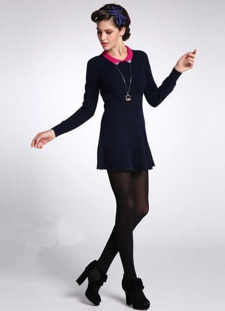 甜美感的百褶裙摆,修身百搭黑色款式毛衣裙 ,穿出甜美又不失时尚的冬装,完美HOLD住温暖,亮眼独特的玫红色立体领设计,增添时尚元素,让你穿起来更显气质。