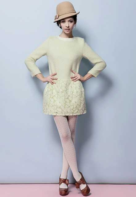 嫩绿色的厚实冬季长袖连衣裙,甜美中透露出一种小性感的蕾丝下摆,不管是单穿还是打底都非常好看时尚呢!