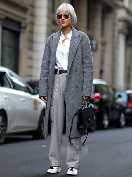 在春冬季的街头上,怎能少了一件厚实感的毛呢长款大衣呢,是凹造型显温暖度的必备单品,这款深灰色的2015长款大衣,瞬间拉长了身体比例曲线美,衬衫搭配西裤,穿得街头休闲美。
