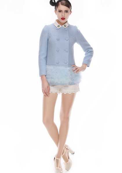 粉嫩的蓝色皮草毛呢外套,简约利落的衣身,穿起来很时尚大气,奢华的皮草下摆,手感超好的皮草质感,让你在冬日温暖的同时又不失大气范儿,轻易穿出高贵名媛范!