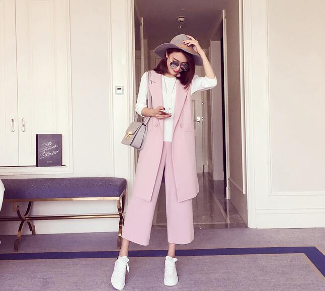 ★小编点评:各位MM穿衣纠结症犯了吗?春夏两季,你需要的就是这么一套马甲套装啊!马甲可是非常能藏肉肉的哦,其次,下装的阔腿裤,九分的长度,显瘦显高又好搭配,只需要在马甲里内搭一件白T就可以了哦~