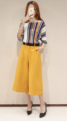★小编点评:这套春夏休闲时尚套装简直是不会搭配衣服的MM的福音啊,条纹上衣让人时尚感爆棚,还有今年超级流行的八分廓型裤可是不挑腿型的哦~露出纤细的小腿,喜欢的不要不要的了。