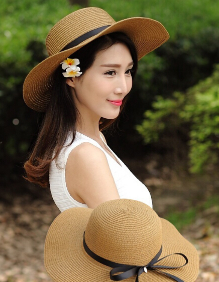 【女生遮阳帽款式1】手工制作的精致黑绸带让这款女生遮阳帽更显简约时尚,小雏菊的装饰十分地清新,而纸草的精心自然又环保,可折叠的特色方便携带取用,整体款式大方美观,多色可选更容易搭配喔!