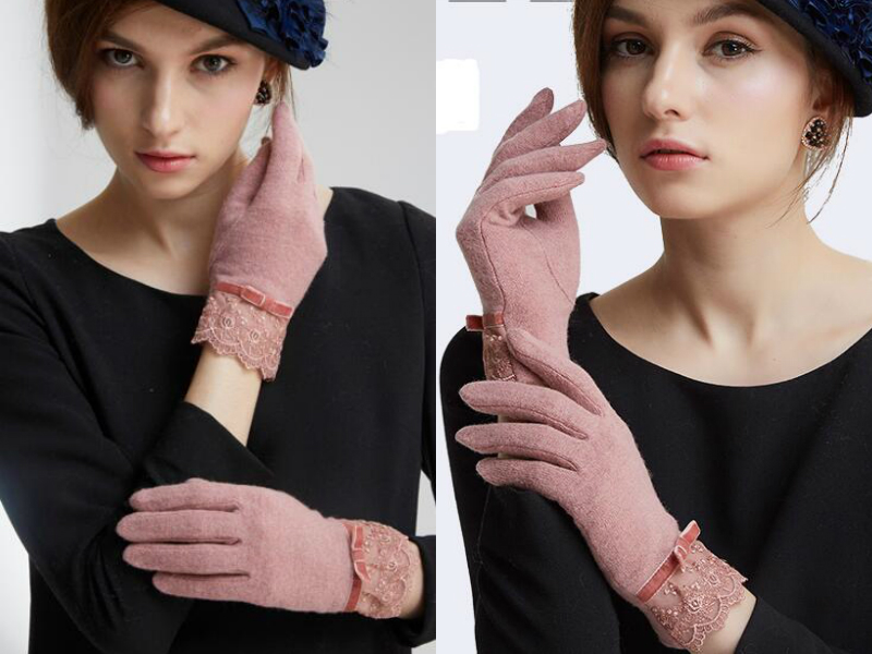 看起来很优雅高档的一款韩版手套,精选羊毛料子,柔软舒服,双层加绒设计更保暖,裁剪贴合手指,双手不显臃肿,手背上的蝴蝶结蕾丝设计增添一丝甜美感,皮粉色更彰显少女心。