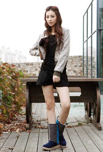 时尚新潮的拼色款雪地靴,冬日穿出温暖潮流感,修身款的中筒雪地靴,穿出纤细修腿曲线,完美演绎出新潮时尚范。
