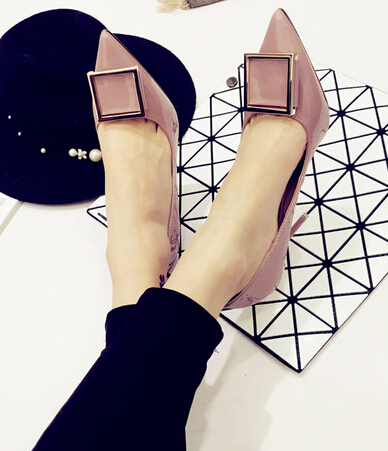 高跟鞋款式02》》》》》显嫩显白的裸粉尖头高跟鞋大方淑女,方扣金属的配饰十分地优雅。漆皮的亮面材质让整个鞋款都变得十分百搭,不管搭配着怎样的服饰都能轻松驾驭喔。