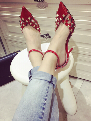 高跟鞋款式03》》》》》个性的铆钉装饰着尖头高跟鞋的鞋面位置,极具朋克风格,而红色的高跟鞋款式又在个性的基础上再添女人味,镂空的尖头高跟鞋还十分地特别,美得不可言喻。