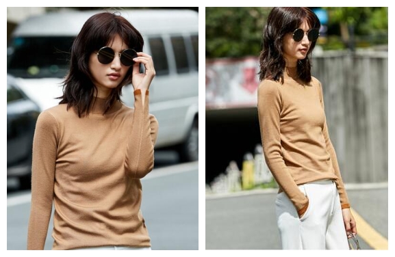 相信你也听过北欧风,极简风,抛去华丽的装饰,追求简洁线条是最近的潮流呢。修身的版型舒适保暖,展示你美好的身材。这件驼色针织衫拼接黄色和开叉的袖口虽不起眼,但小小心思却充满设计感。喜欢高领的保暖又怕秒变“没脖子星人”,半高领的设计拯救你。半高领驼色针织衫让短脖星人在秋冬也能暖暖的。