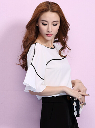 【女装雪纺衫款05】简约的衣服设计经典百搭,时尚包边的袖口更是优雅时尚,不挑身材的衣服版型是不少女生为之喜爱的原因。落肩的设计让高贵大方的气质更加突出,整件衣服款式是轻盈又细腻,非常好看。