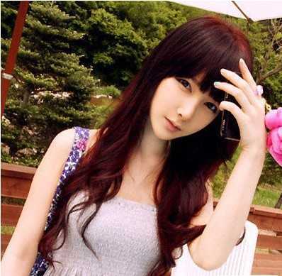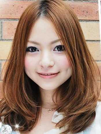 特点:中间分的长刘海,一路下来形成梨花状很好地修饰了脸型,可爱俏皮,染上颜色更显白皙皮肤。