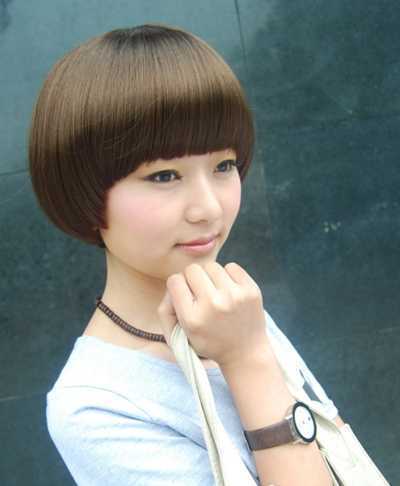特点:圆型的女生就是看起来很可爱,不妨可以利用这个特点,剪一款可爱的波波头,显瘦脸型,清纯活力感也好,很适合学生妹妹呢。
