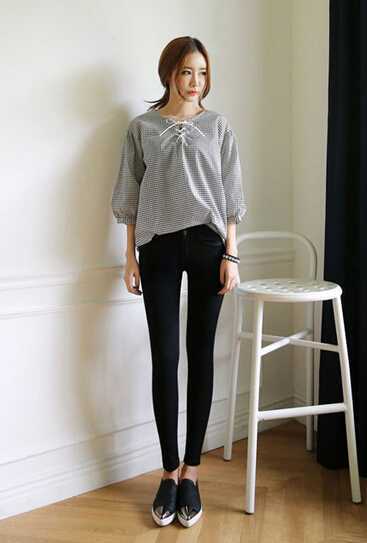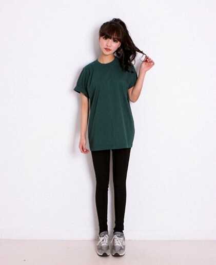 不要以为腿粗就不能穿打底裤,只要你选一条舒适、宽窄有度的深色打底裤,上身再搭配一件长款的T恤,就可以遮住你腿部最粗大的部位,露出相对纤细的部位,非常显瘦。