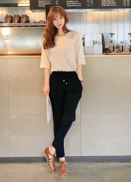 上宽下窄的哈伦裤垂感十足,不仅可以掩盖你臀部与大腿的不足,还拉长你下身的线条,塑造小腿的曲线,下身再配一双罗马风的凉鞋,显得时尚又帅气。