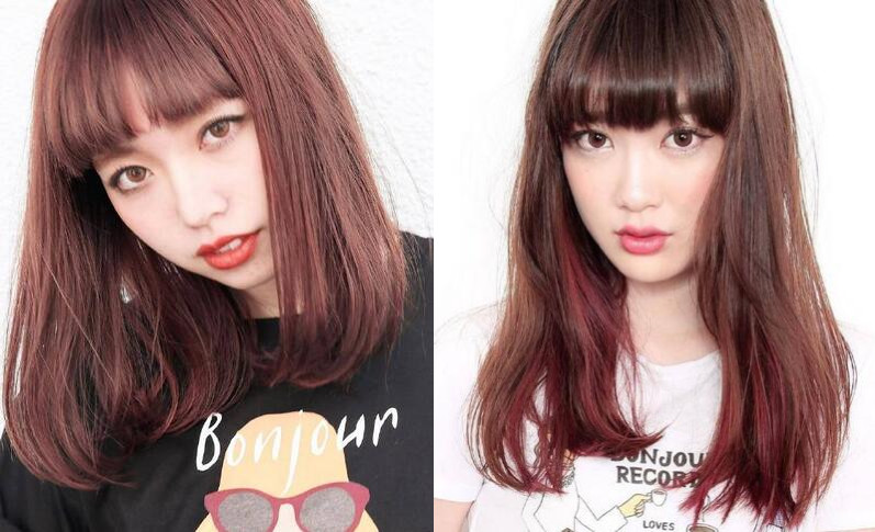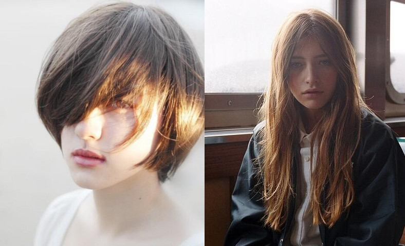 齐刘海发型很挑人,却特别地适合长脸女生,正因为脸太长了,所以才要借助有一定长度和厚度的齐刘海去遮挡一下脸太长的缺点。长脸女生不必留太长的头发,如图示的中发再加上发尾内扣的设计就很修脸。