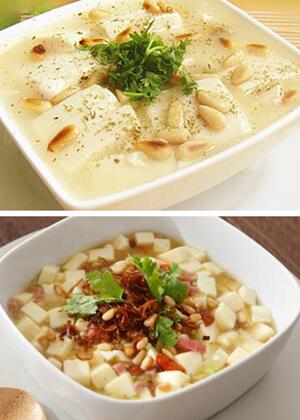 1、这道松子豆腐有减肥的功效,可以帮助排出体内多余水份,促进消化,特别针对腹部的脂肪。