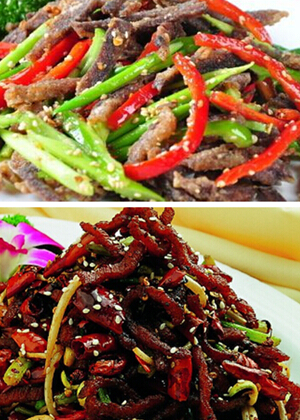 烹饪技巧:切牛肉时逆着肉的纹路切,牛肉丝一定要煸炒至酥,不然很难咬得动哦。