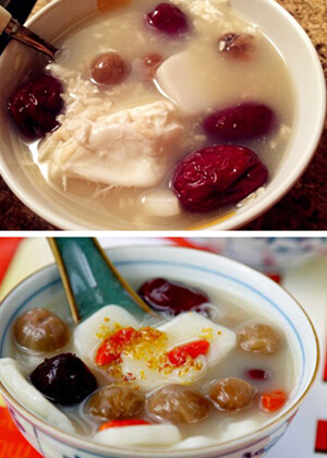 1、把红枣洗干净,桂圆去壳,枸杞洗干净,浸泡透备用。