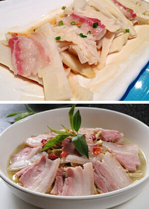 用料:咸肉、春笋适量,葱少许,白糖1勺,水少许。