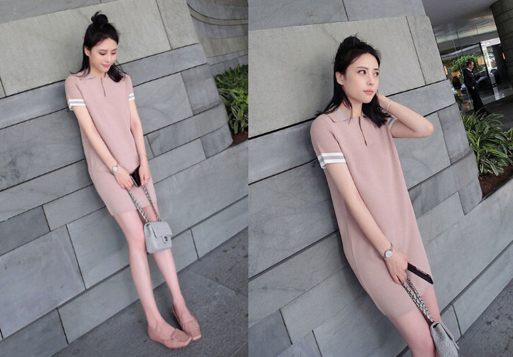 英伦风搭配05》》》》》针织的POLO连衣裙在夏季其实也是非常适合的喔。粉嫩的藕色清新自然,宽松直筒的款式设计修身显瘦,再搭配上一双平底鞋和精致的小款包,英伦街头风的感觉瞬间就飙升,无论走到哪里都非常地出众!
