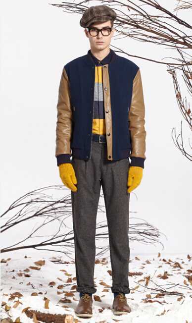 羊毛与真皮结合的棉衣给人第一感觉就是帅气,如果想告别冬季的沉闷感,不妨在里面衬托一件色彩鲜艳的格子衬衫再配上一条浅灰色的毛呢裤子,保暖自然不用说了,同时还大秀男士复古潮流范。