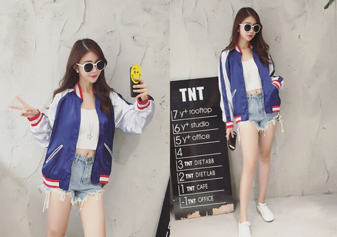 【秋季胖子搭配01】棒球服是秋季里颇为时尚的单品款式,宽松的宝蓝色棒球服上衣搭配着高腰的内搭白色T桖,简介又不失精致,而高腰的牛仔短裤类型更是能瞬间拉长身材比例,让人在视觉效果上显瘦显高,一双小白鞋配得刚刚好,简直就是出街拗造型的必备利器!
