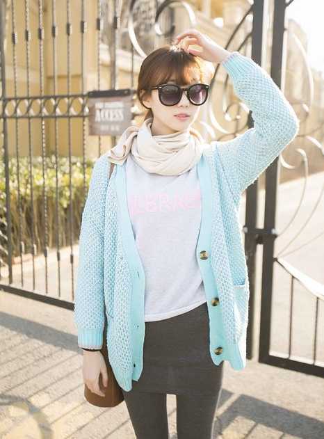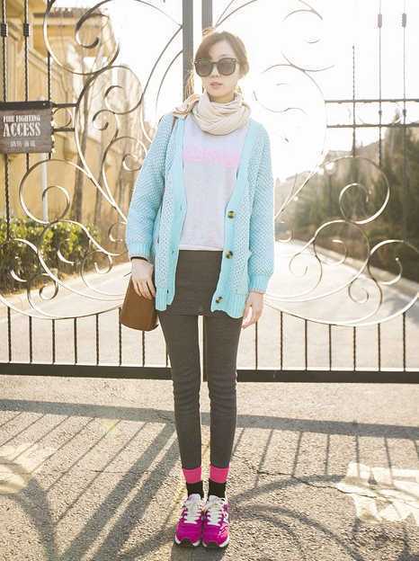 鲜艳的糖果蓝色春季针织衫,在灿烂是阳光下照耀着,显得格外的时尚,搭配低调的灰色卫衣和百搭的黑色打底裤,轻松穿出阳光时尚感,完美演绎出乖乖女范儿。