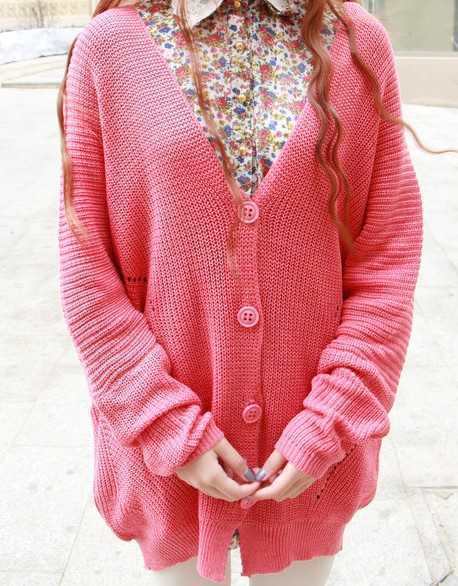 粉红色春季宽松针织开衫,最适合温暖的春天穿着了。