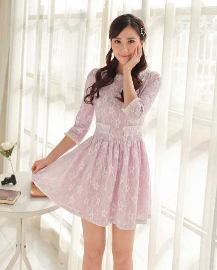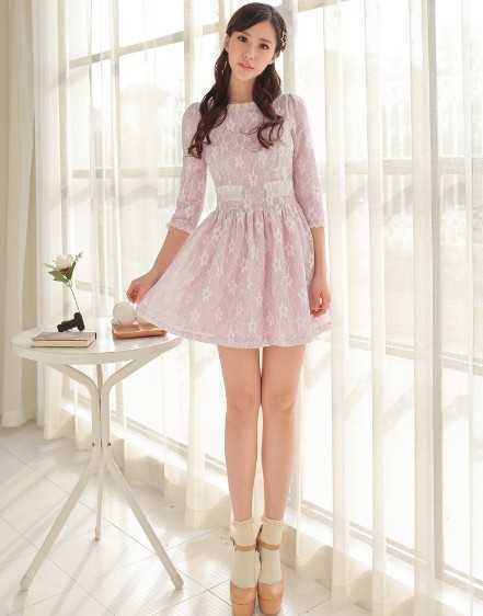 春季甜美感蕾丝连衣裙,高腰的设计,显高挑更显时尚感。