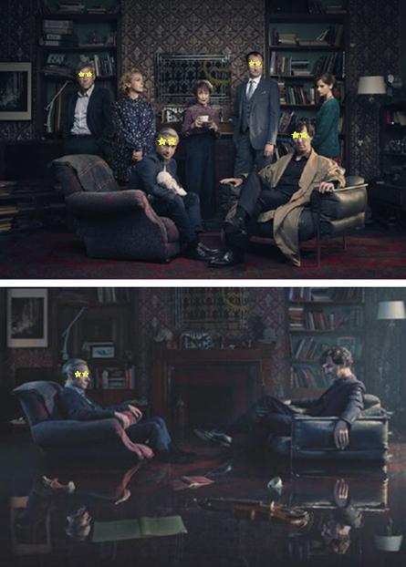《神探夏洛克》自2010年开播以来一直深受广大观众的欢迎,在2016年四月,第四季开拍,经过长达十个月拍摄于制作周期之后,偏方终于公布该剧将于2017年1月1号回归,并公开了最新的定妆照。其中又以“剧组全家福”最引人注目,卷福、华生、玛丽、麦哥、哈德森太太、探长等主要人物均出现在221B公寓里,喻示好戏即将开始。