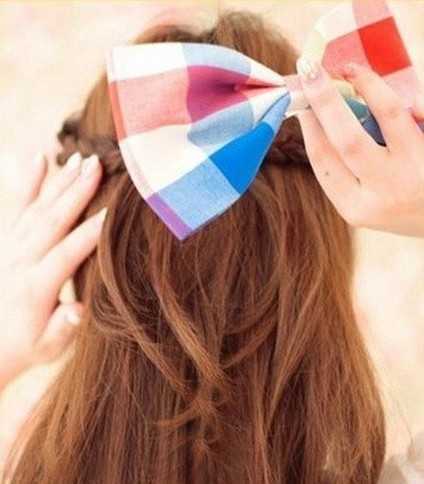 步骤四:戴上自己喜欢的发饰,不单提亮发色,还能遮住编发的接口位置。