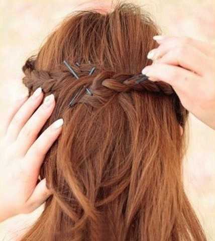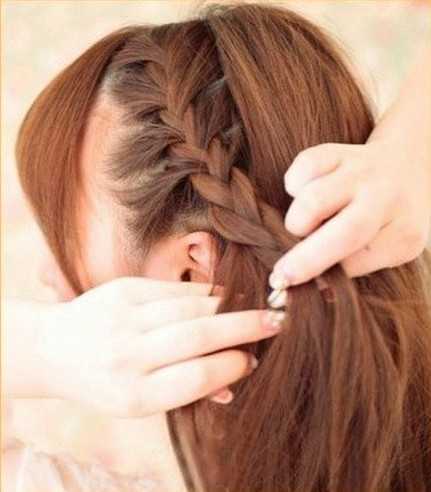 步骤一:梳理好长发好,两边各取一些头发进行编发,上部份按蜈蚣辫的编法,下面则按照普通的麻花辫的编法完成。