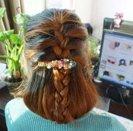6、就这样唯美浪漫的蜈蚣辫编发大功告成了,爱美的MM可以在编发上加入自己喜欢的小发饰,怎么样?是不是很简单呢!那就赶紧弄上一个吧。