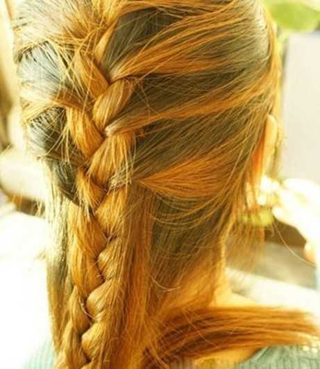 2、如图中,在刚才编织的蜈蚣辫过程中不断加入新的头发,一直往下编织。