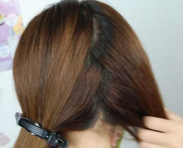 1、首先梳整齐头发后把后脑勺的头发,平均分为两部分,并用发夹夹住以免凌乱。