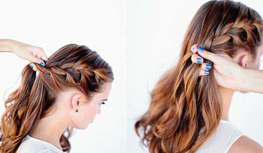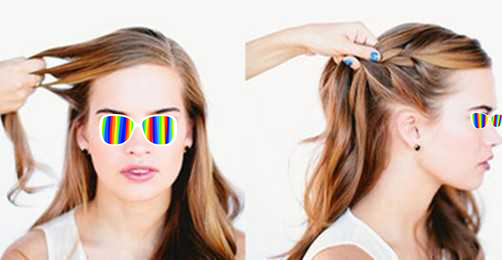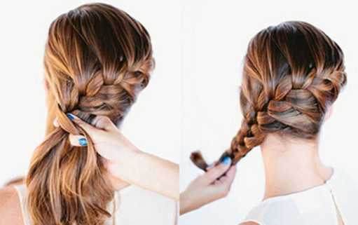 step2:将这四束头发编成四股辫,在编的时候不断加入下面的发束。