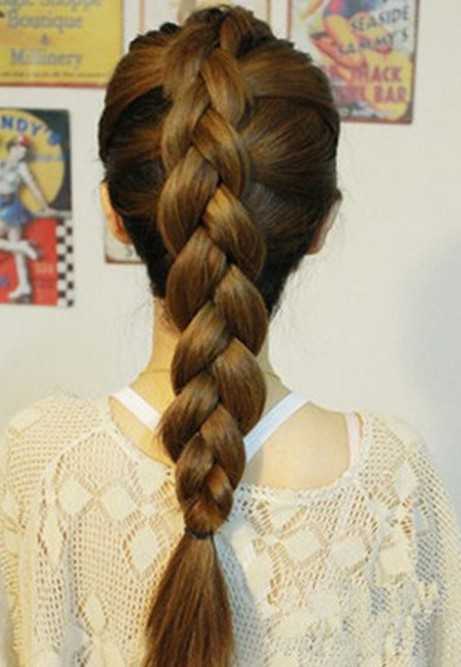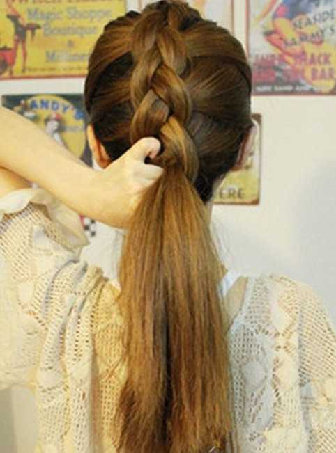 2、把头发编织到脖子位置时,再把剩下的头发进行简单的麻花辫编织下去。