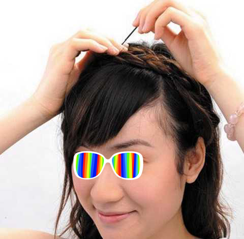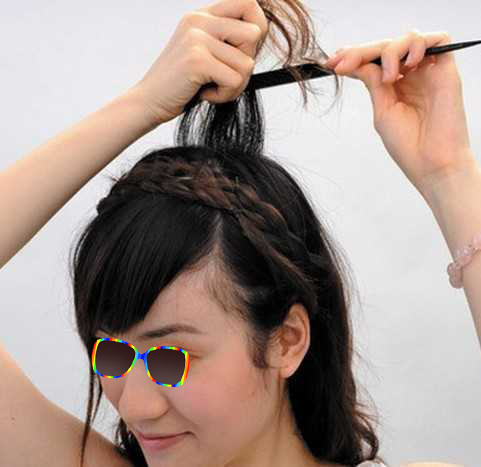 4、接着把两束发辫缠绕在顶部上,使用发卡固定好位置。