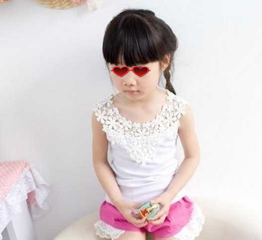 浓密的黑发让显出健康的光泽,同样是双麻花辫的编发发型,整齐的刘海贴在宝宝额头之上,甜美可爱极了,搭配一个黑色的框架眼镜,小女孩认真的神态很让人喜欢。