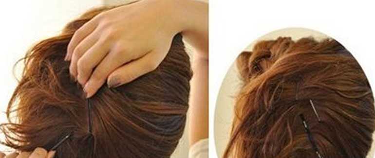 3、编织好后就讲发辫折向另一侧,使用小发卡固定位置。