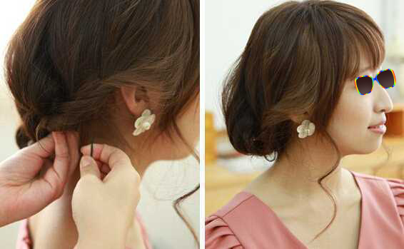 5、最后使用隐形发夹将发尾别进辫子里就完成了。