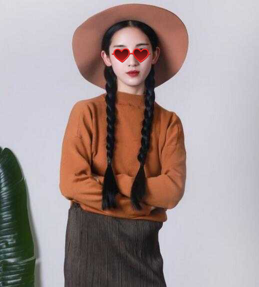 3、双马尾编发很小,就像小辫子一样,这样的双马尾编发适合头发少的女生,搭配斜刘海,出来的感觉依然很甜美可爱,心形的墨镜,爱心指数爆表哦!