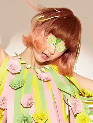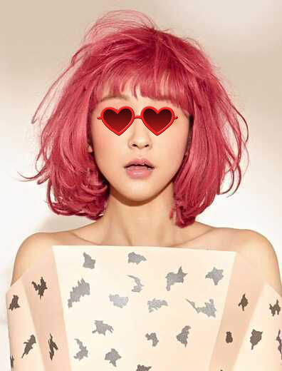 发型点评:蓬松凌乱感的粉红色染发,夏天这样出街瞬间回头率百分之两百,加上夸张的表情很搞怪哦!
