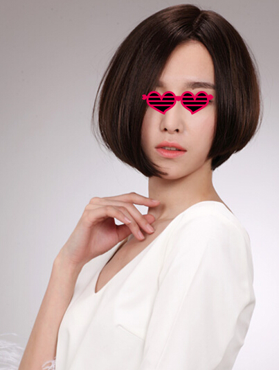 波波头假发款01》》》》》斜分的刘海设计勾勒出柔和的脸型线条,让人更具斯文大气的魅力,深棕的发色还能衬托出女性白皙通透的还肤色。稍显内扣的假发发尾更是让这款波波头发型更显立体饱满,逼真又好看!