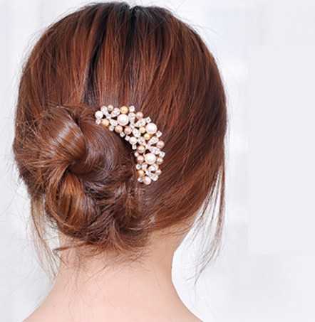 最后,在头发上装饰点好看的发饰,这样的优雅淑女的长发盘发就完成咯!很赞!