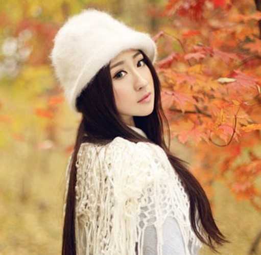 很唯美的意境,透出了浓烈的冬季气息,长长的直发发型在白色帽子的衬托下,变得有些优雅安静了,贴服的两侧头发又是把一张迷人的脸蛋完美呈现,给人娇美爱惜感。